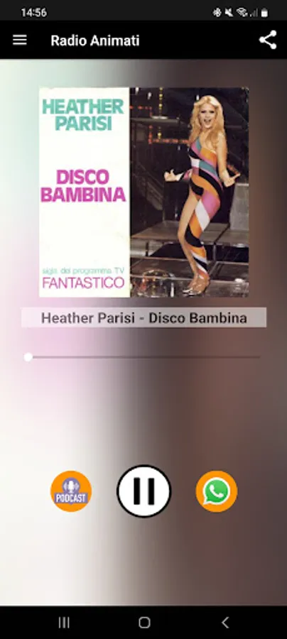 On RadioAnimati you can listen to the great hits and the most unobtainable songs by Cristina D'Avena, I Cavalieri del Re, Superobots, Giorgio Vanni, Oliver Onions but also by Raffaella Carrà, Pippo Franco, Lorella Cuccarini, Corrado, Loretta Goggi and Heather Parisi.