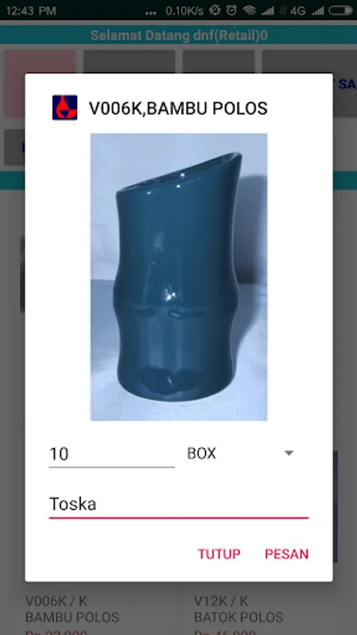 The first application from Indopot to accept orders online, when the user first starts logging in, if not already registered then can simply click on the list, then the user can select the product to order, after pressing the complete button the order details will appear.