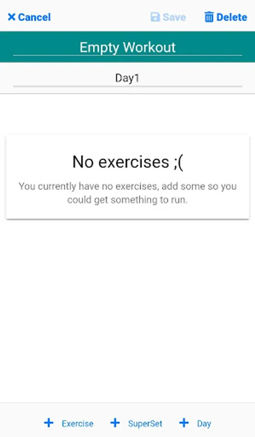 *Add a new day to your workout.