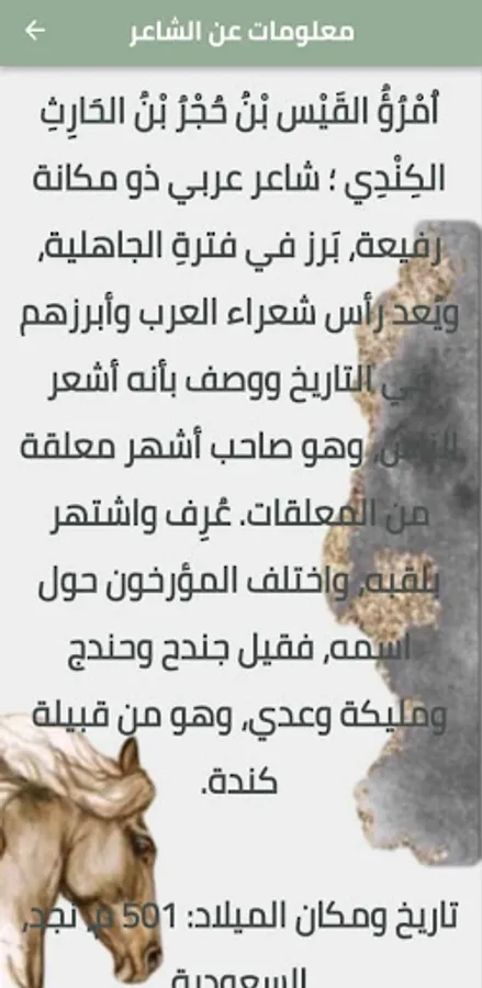 The application of Imru' al-Qais' poem with the most beautiful voice is available on Google Play