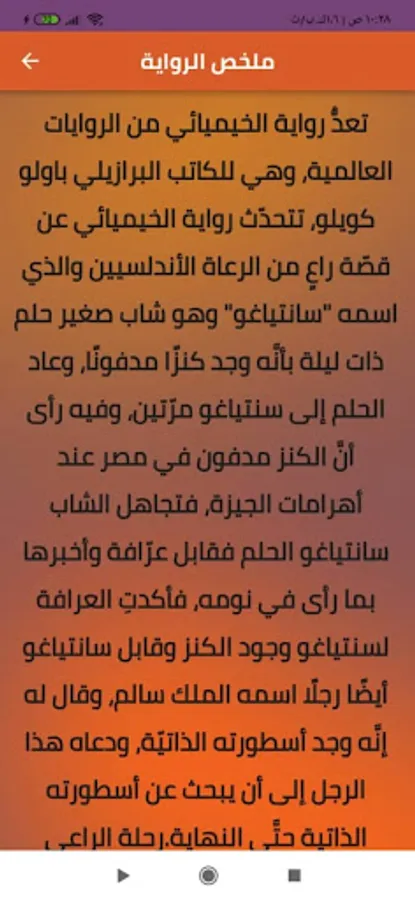 It tells the story of a young Spanish shepherd, Santiago, on his journey to fulfill his dream, which has been repeated more than once, and whose events revolve around a treasure buried in the pyramids in Egypt.