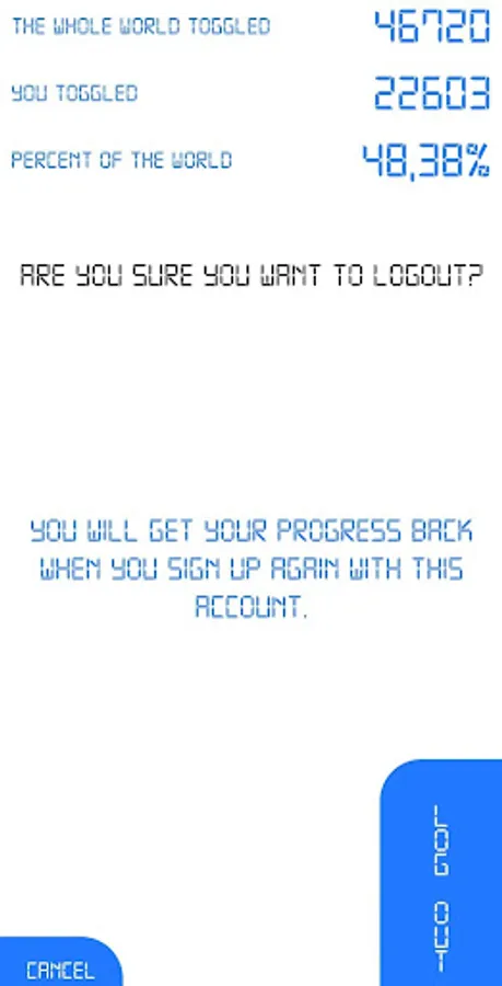In this game you have to toggle bits. And the number you toggled is syncronized with all players around the world. So you see how many bits the whole world has toggled together and how many percent of them are from you.
