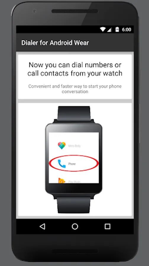A launcher for an app which lets you dial a number, call a contact form your contacts or recent list on your phone. All your phone contacts and call logs/history will be accessible on your watch.