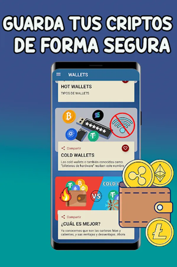 This application is a course on cryptocurrencies that will teach you the fundamental concepts that you must know if you plan to enter the crypto world. Do you want to know what cryptocurrencies are? Have you heard about bitcoin, but don't know what it is? Would you like to buy cryptocurrencies, but do not know how to do it? Would you like to know how this technological revolution began? If you are asking yourself all these questions, this app is for you. Whether you are a beginner or have ever read something on the subject, this application will help you to better understand some concept that has not been clear to you and perhaps to know others that you did not know. Did you know that there is a way to get free cryptocurrencies? Here we explain it to you.