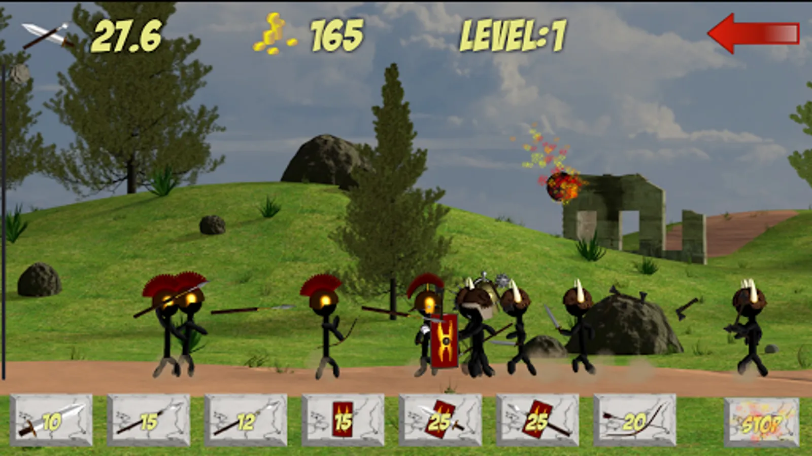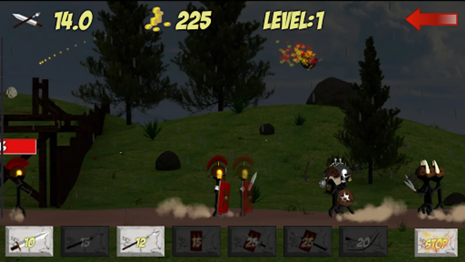 Roman Defense is a challenging, round-based, stick-man, spawn defense game where you defend your fort by spawning units while simultaneously pressing the attack on the barbarian horde.