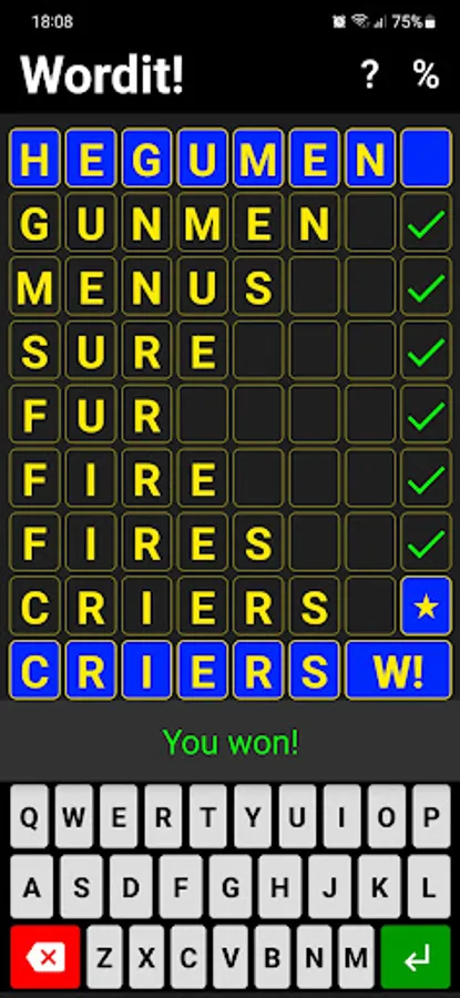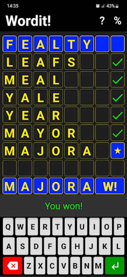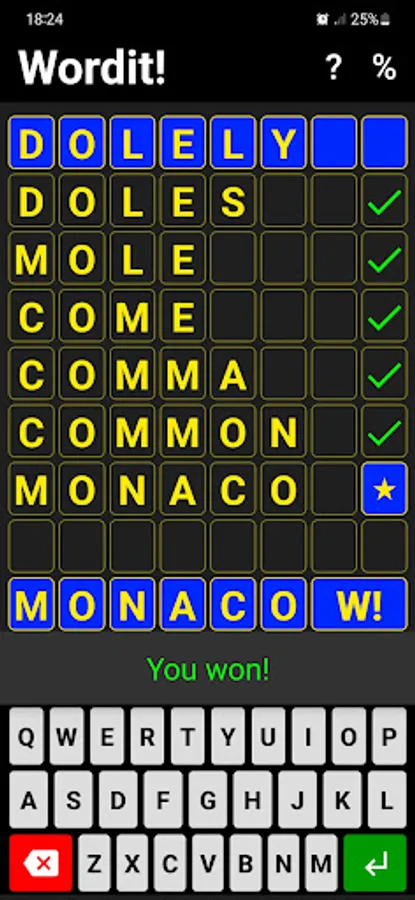 You get a pair of words. In order to win, you have to transform the former word into the latter one in the least number of steps possible. A lower average of steps means more efficient solving.