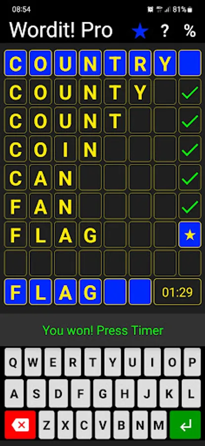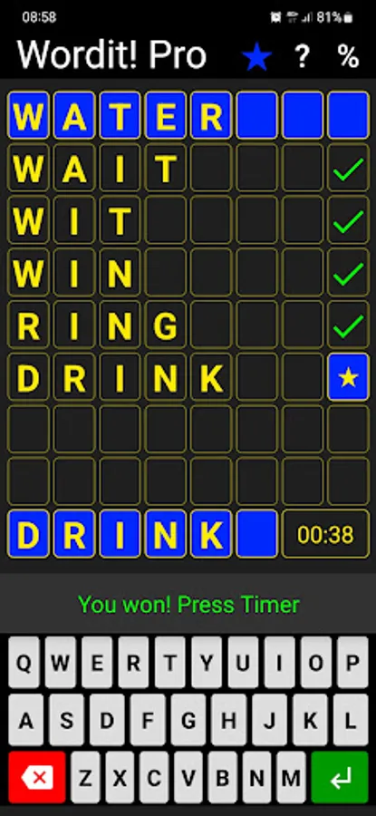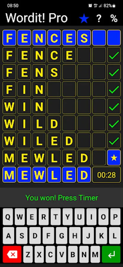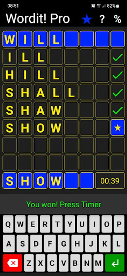 You get a pair of words. In order to win, you have to transform the former word into the latter one in the least number of steps possible. A lower average of steps means more efficient solving.