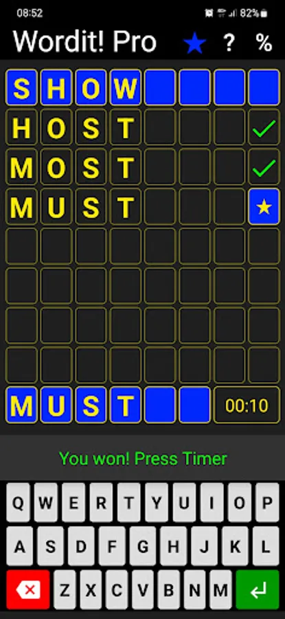In Star mode you can choose a pair of words by yourself. Type first word followed by Enter, then second one and Enter. To play press 'START'.