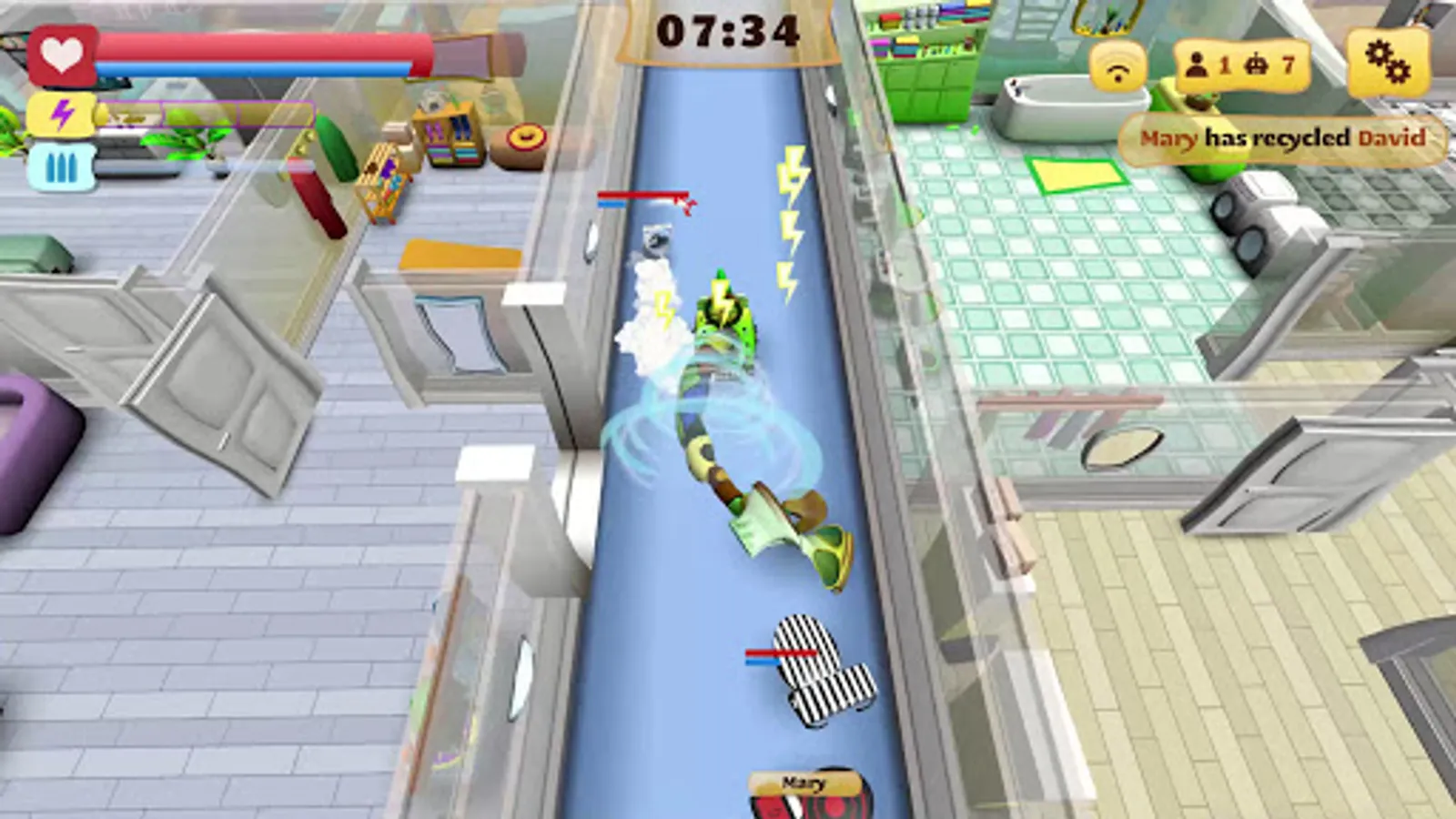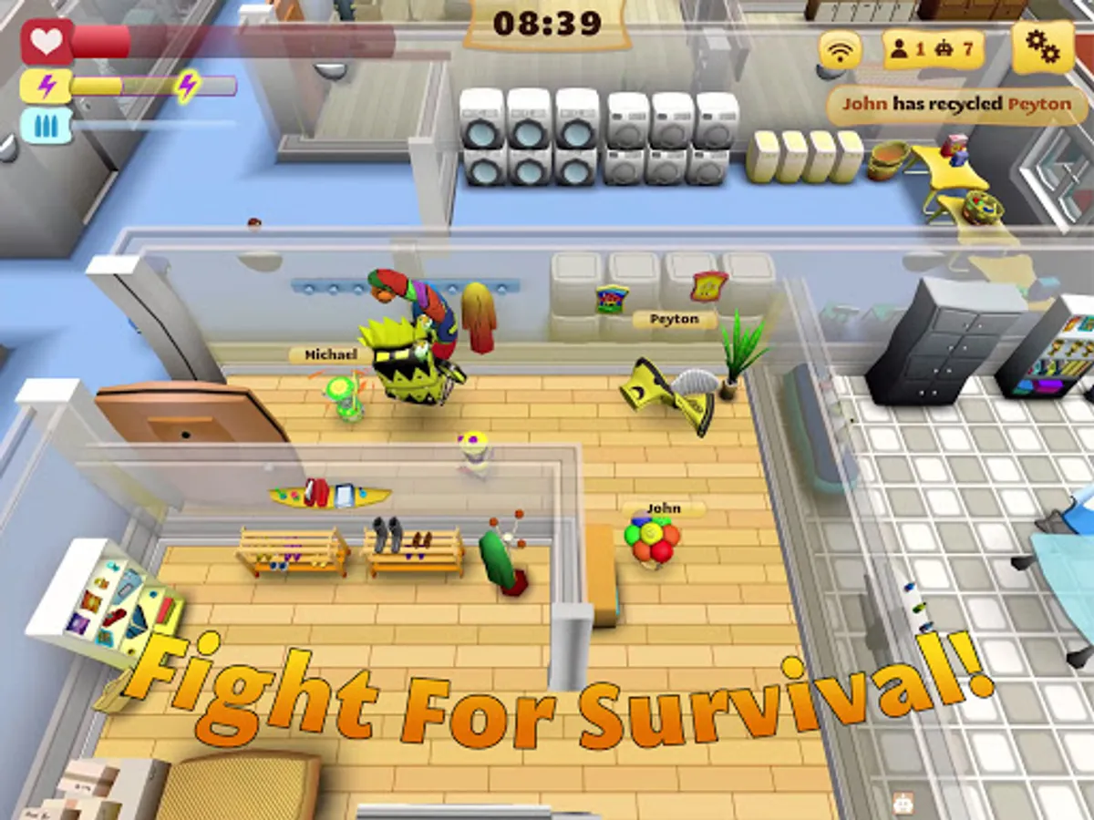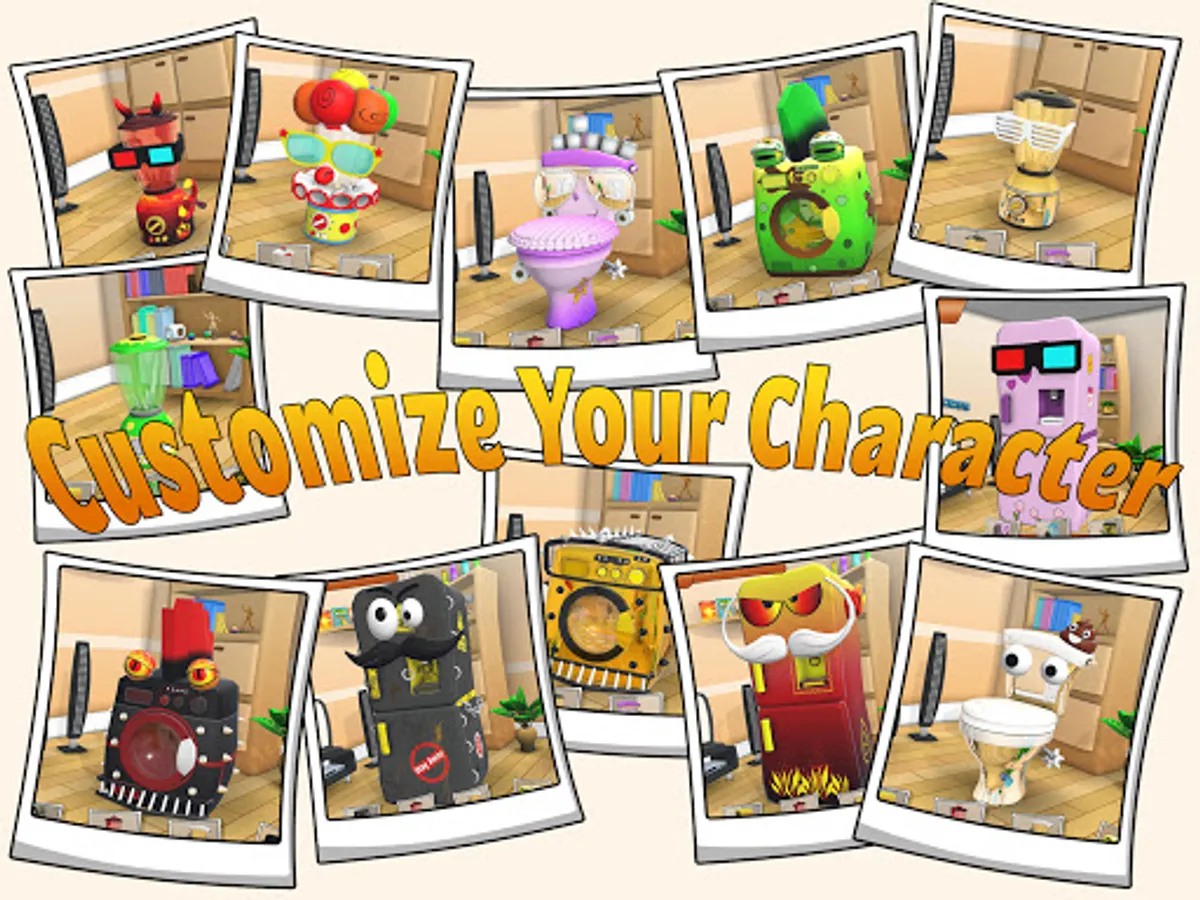 Choose your favourite appliance and start fighting against the other opponents with friendly weapons and unique attacks!