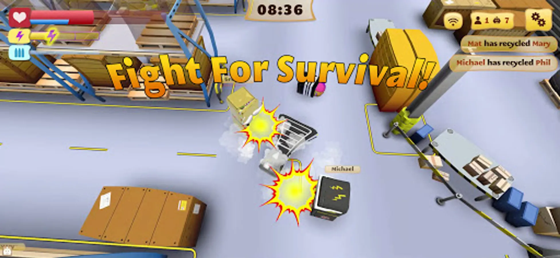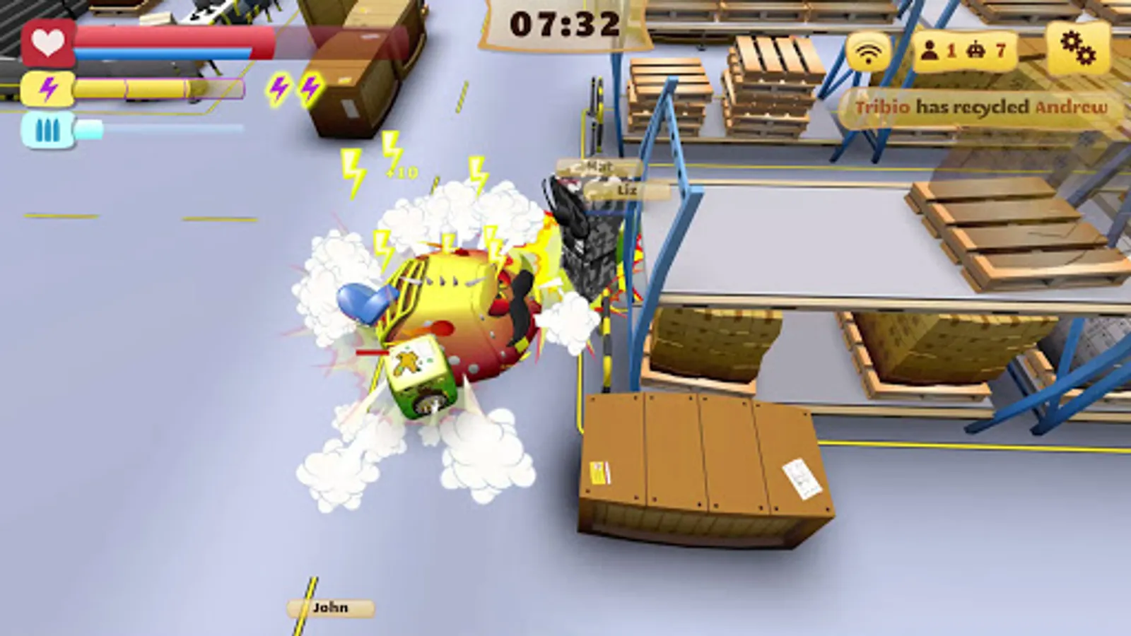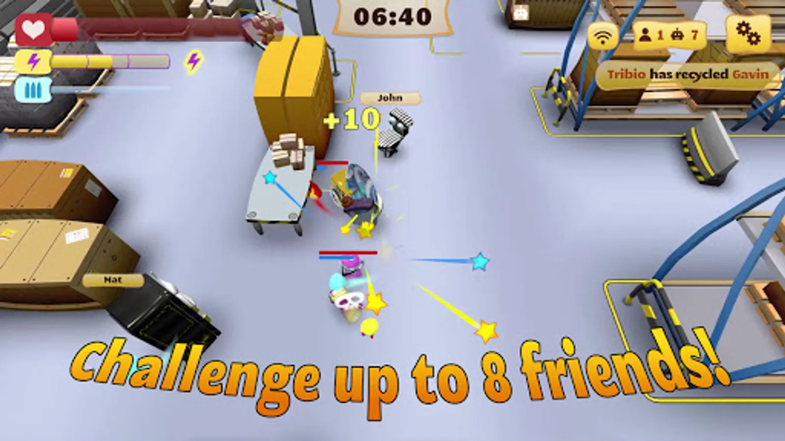 Choose your favourite appliance and start fighting against the other opponents with friendly weapons and unique attacks!