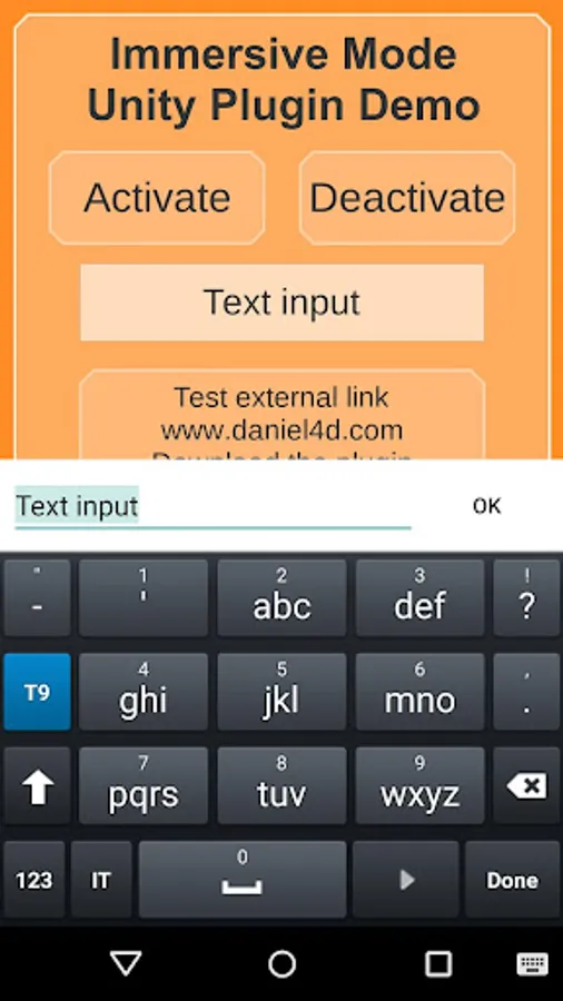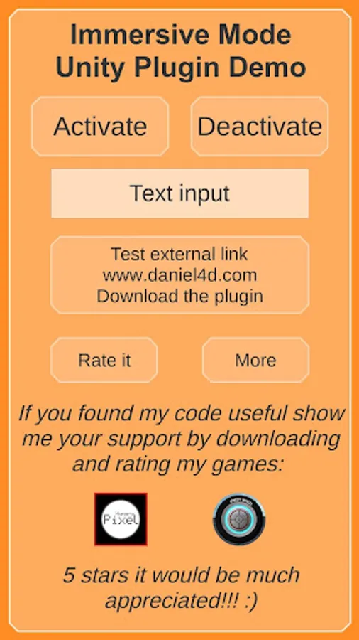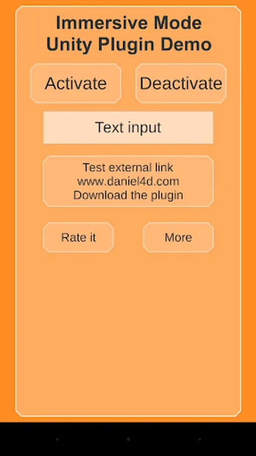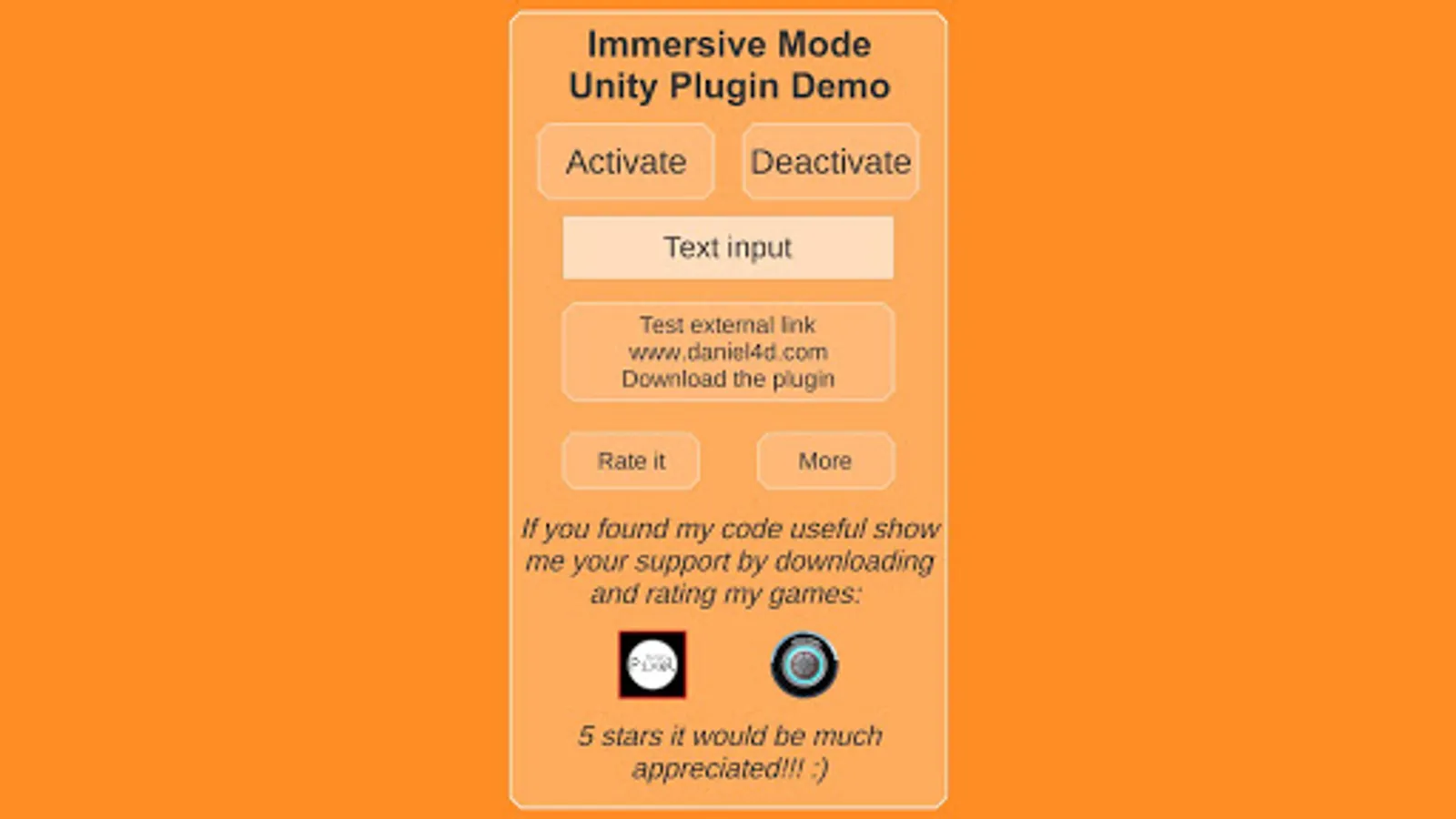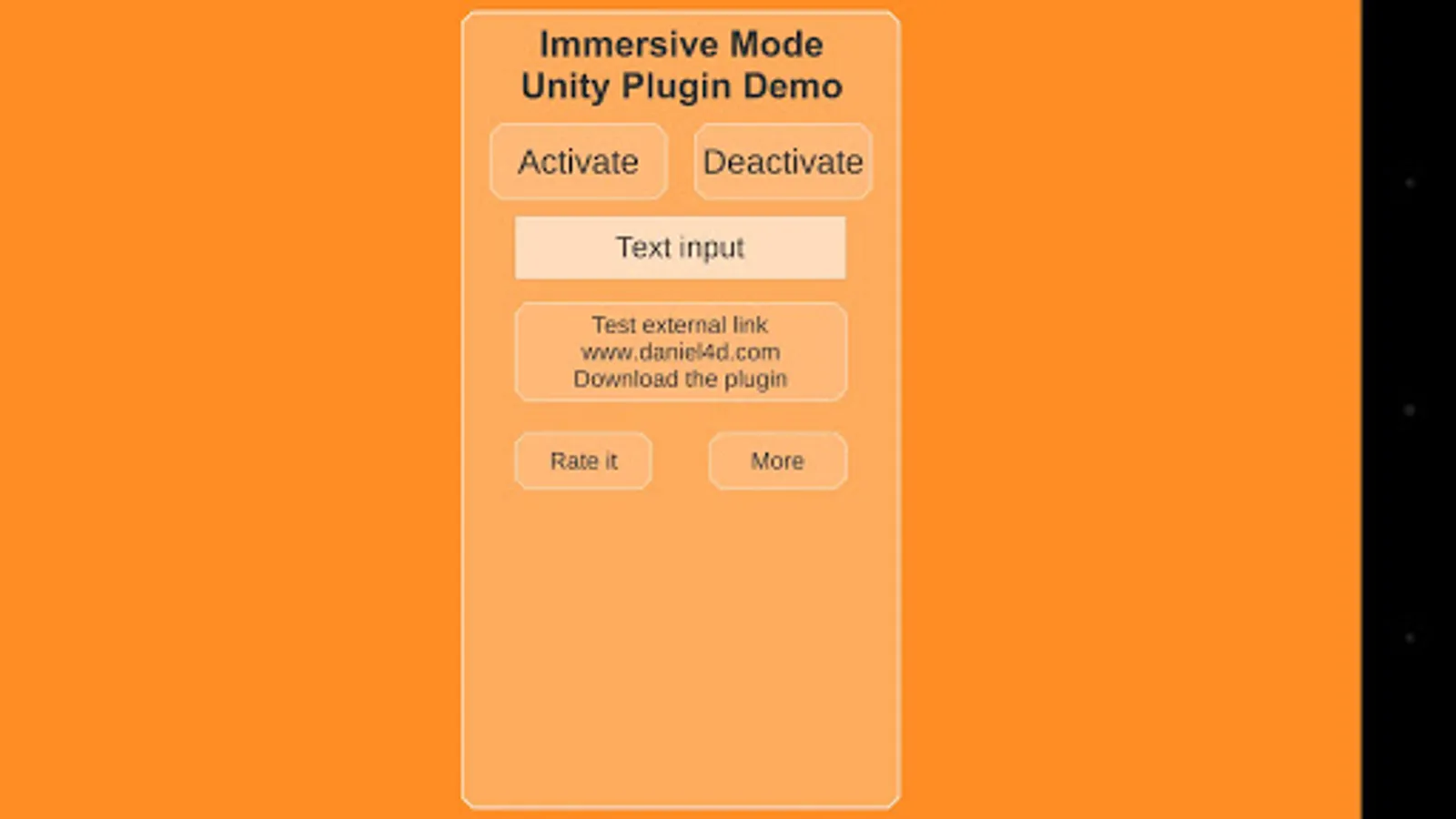 The app demonstrates how to enable and disable the Immersive Mode screen in Unity3D.