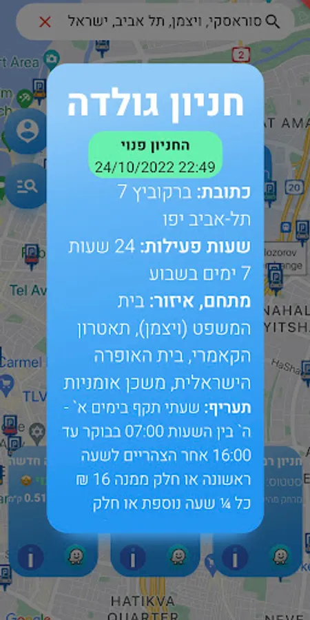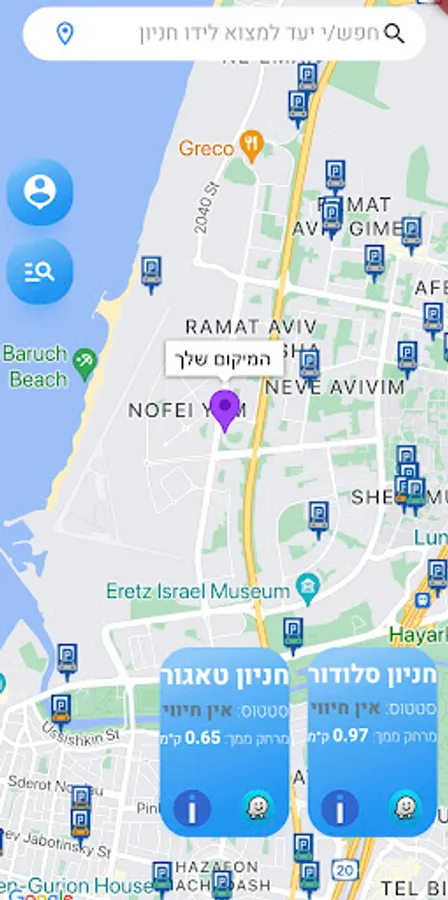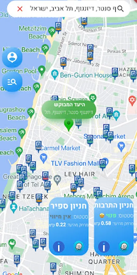 Before leaving with the car to look for parking in Tel Aviv, you can find the nearest and available beach estate parking lots to your current location or to the destination location you were looking for.