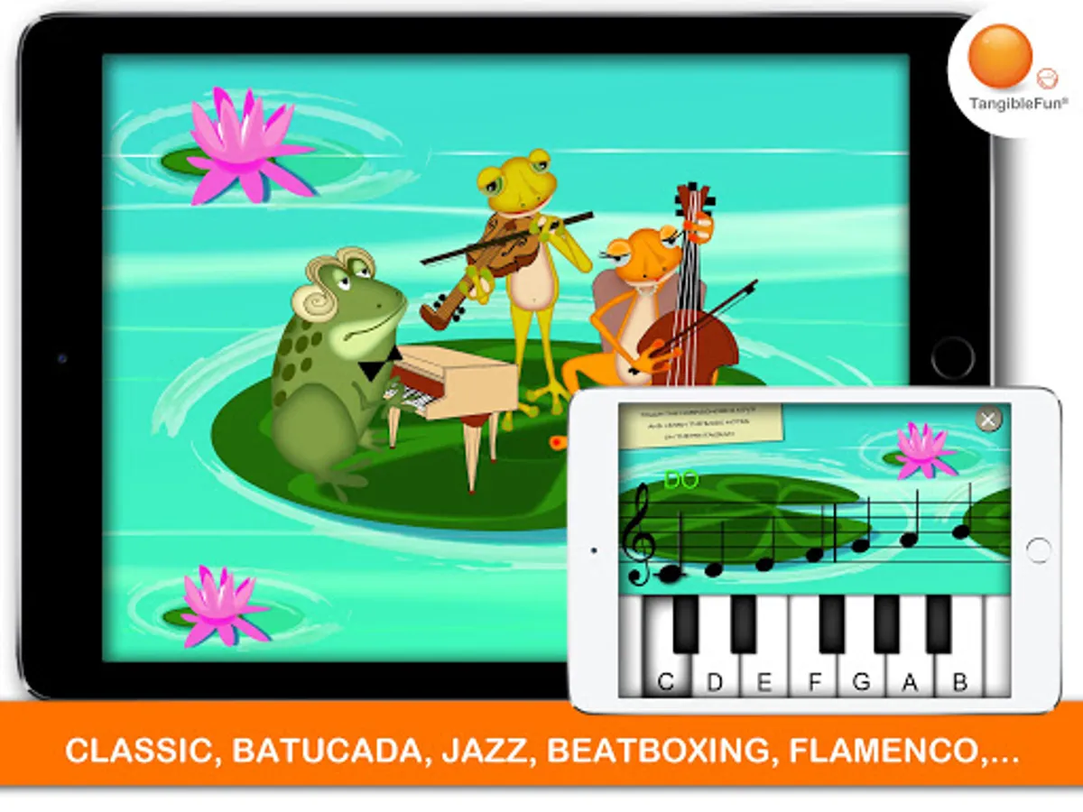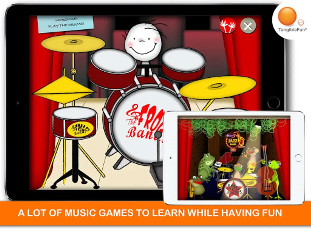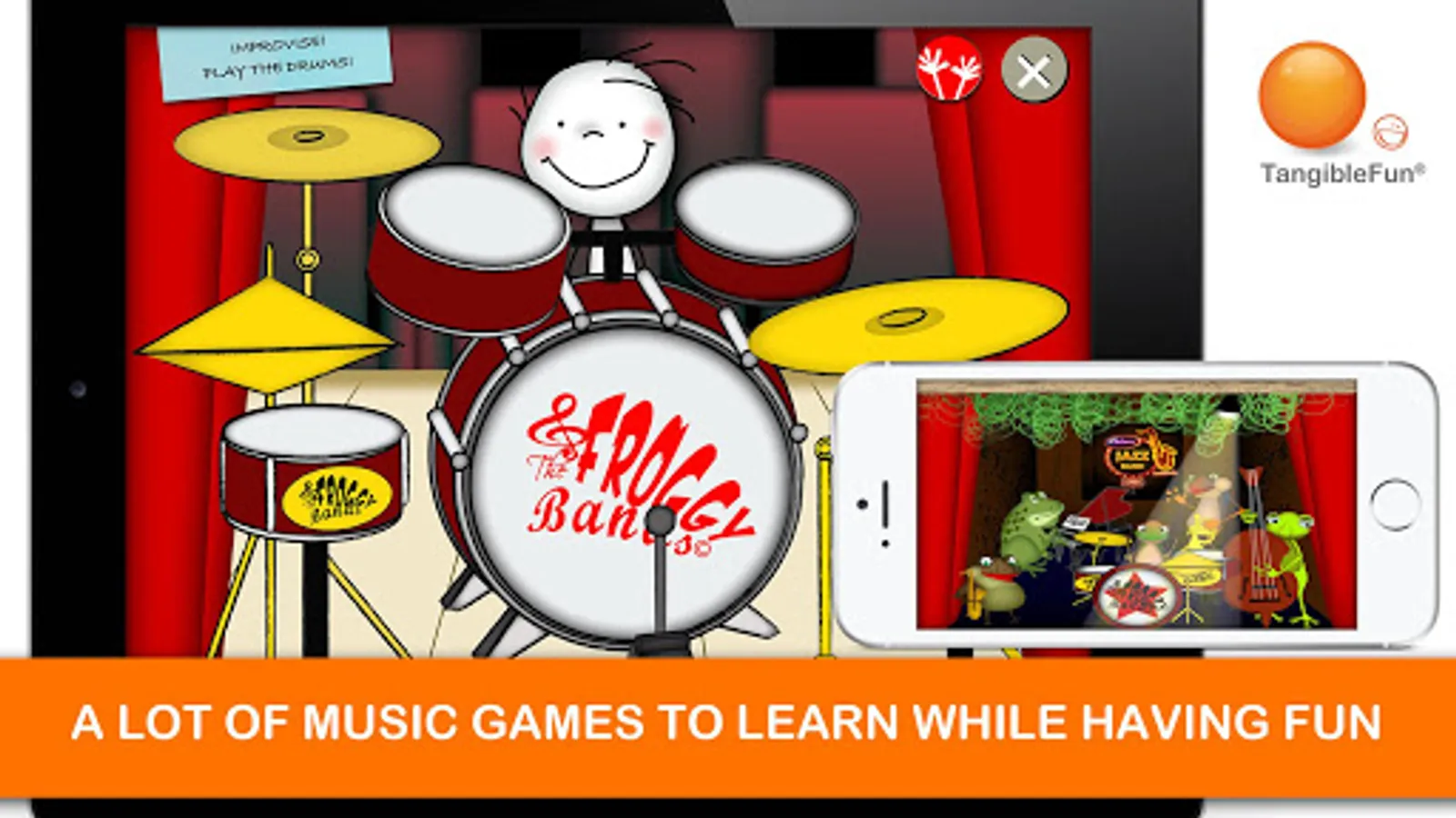 In the colorful land of The Froggy Bands you'll find 10 different musical bases with more than 40 instruments, sounds to learn and many games for children, which will introduce them to the magical world of music.