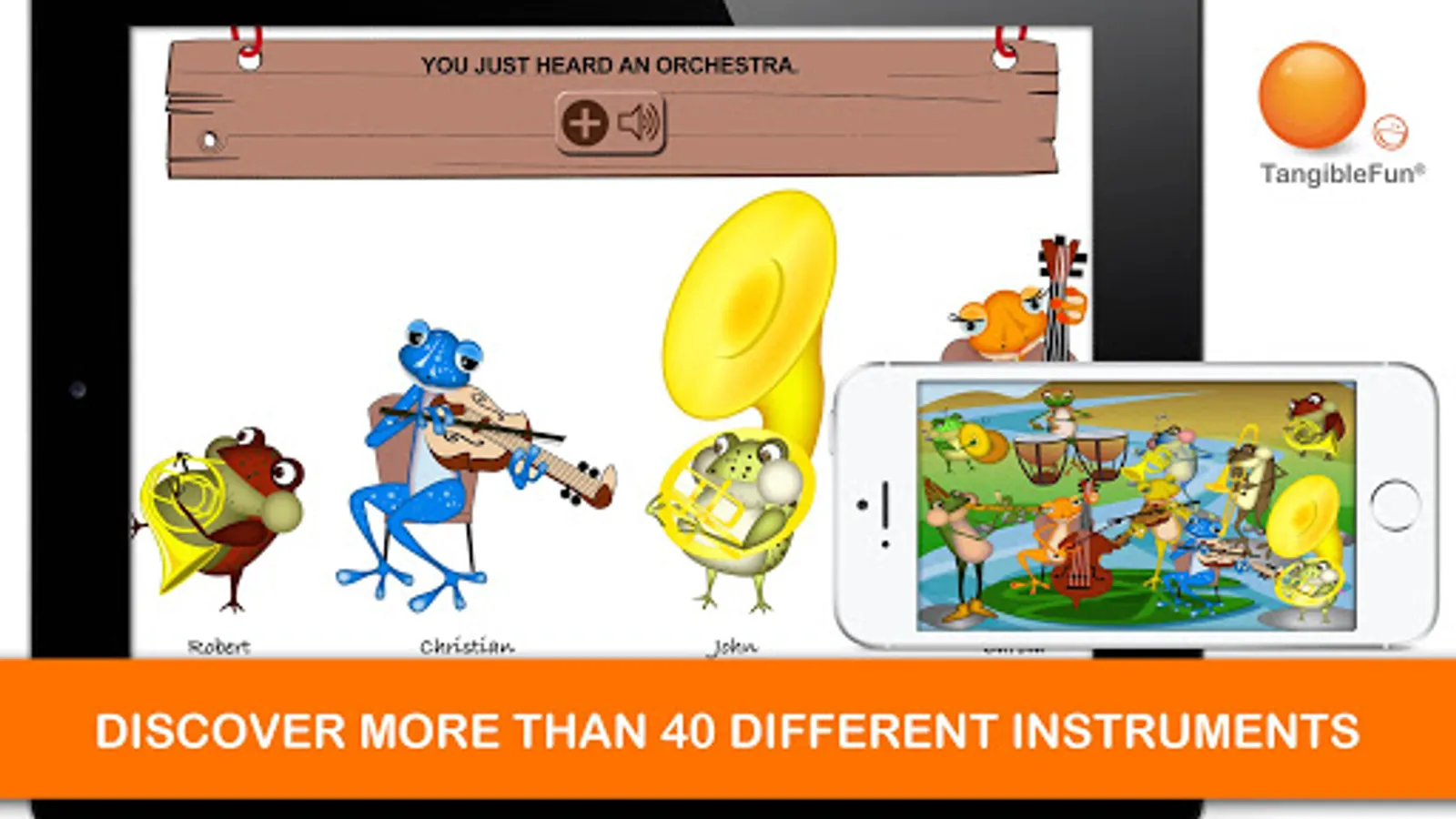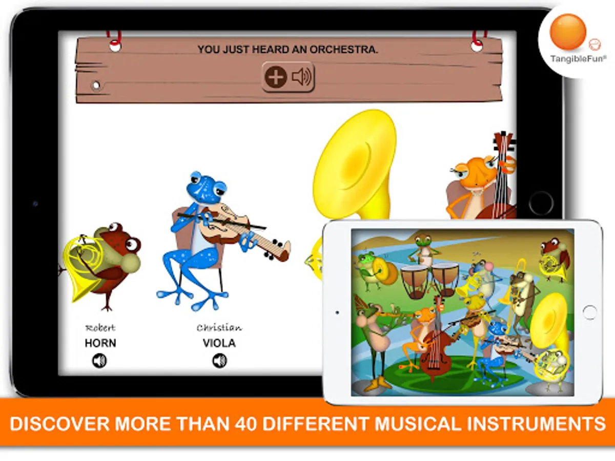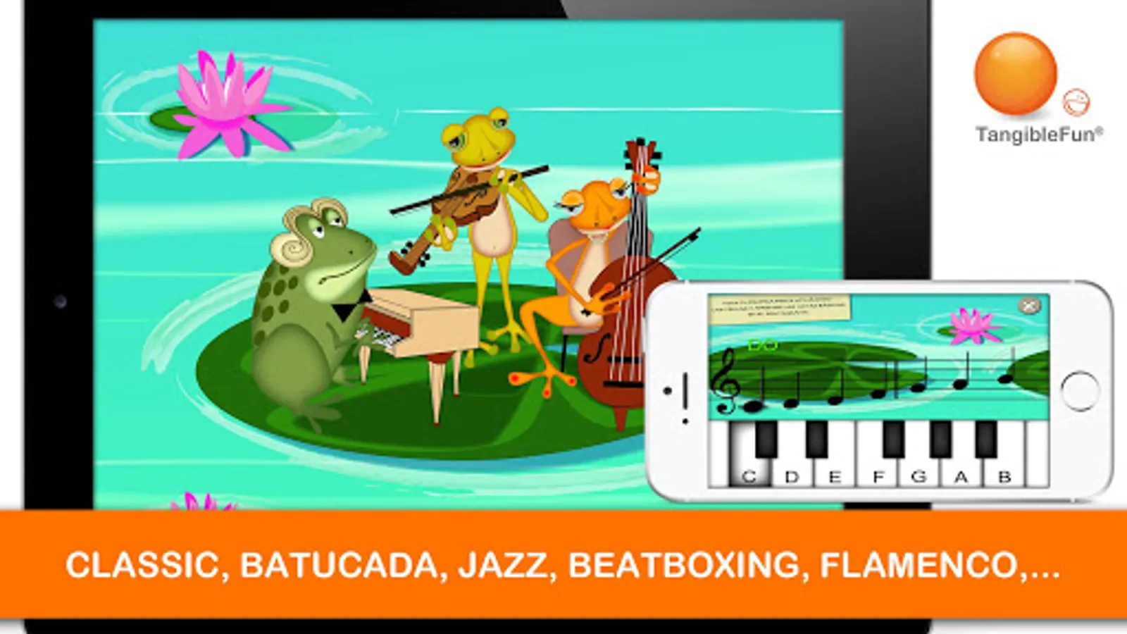 In the colorful land of The Froggy Bands you'll find 10 different musical bases with more than 40 instruments, sounds to learn and many games for children, which will introduce them to the magical world of music.