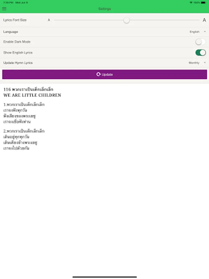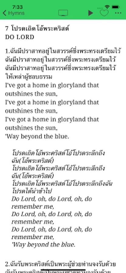 This Thai SDA Childrens Hymnal app was developed by Daniel Bair. The hymn lyrics were first transcribed by Khruu Oiy and then edited by Tesha Bair, who also worked on finding the corresponding English on many hymns that were only in Thai. The hymnal pages were digitized and scanned by Daniel Bair. The audio for each hymn was a donation by Sheany and Danny Pung and “The Singing Friends”. This project is a work of love dedicated to the Seventh-day Adventist church of Thailand.