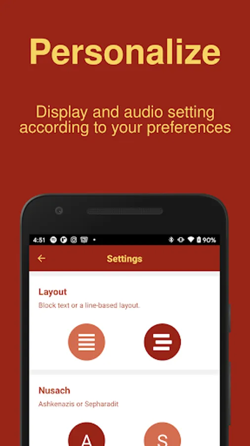 • Two different Nusach’s to choose from: Ashkenazis and Sepharadit.