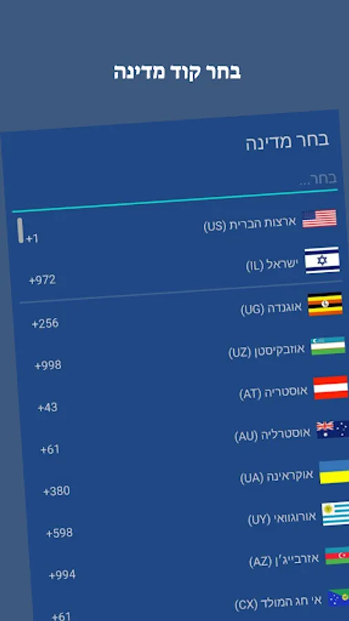 1.Select a country code. You can do this by clicking on the country code displayed