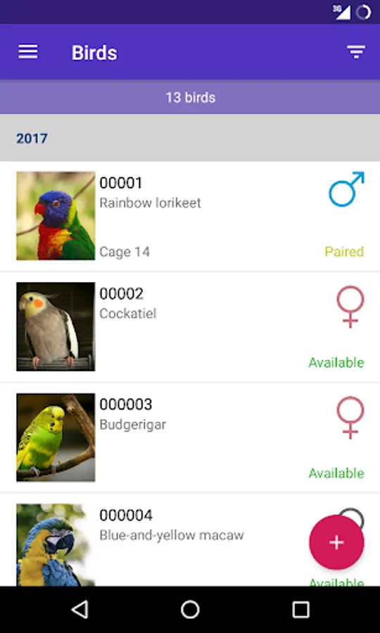 "My Birds" is the most comprehensive app for avian management. Forget about lost paper chips where you can’t find anything, chaotic calculus sheets and notes in calendars. With "My Birds" you can easily manage your birds, pairings and eggs. Main features: