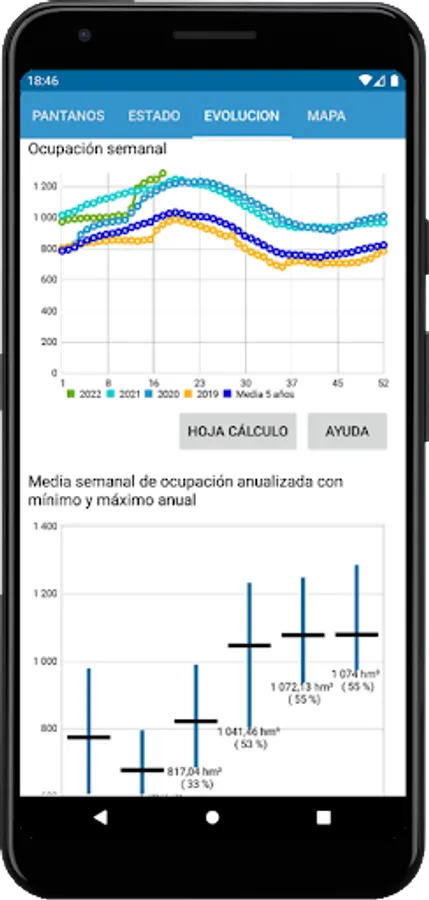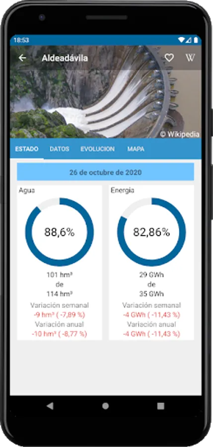 If you are interested in these topics, thank you for your sensitivity! I hope you like my app. It allows you to see on your mobile in a friendly way the weekly summary of the state of the Spanish water reserve, published by the Ministry for Ecological Transition (alias "MITECO").