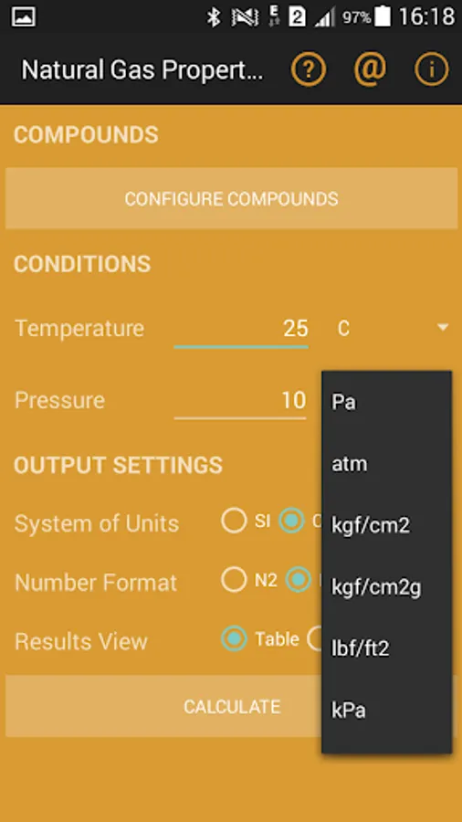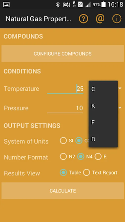 The Natural Gas Properties app calculates thermodynamic and calorific properties of Natural Gas mixtures.