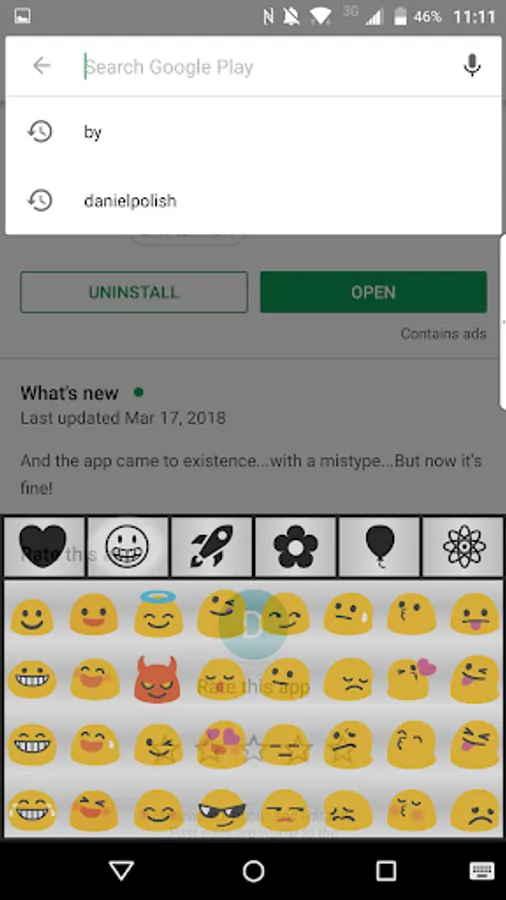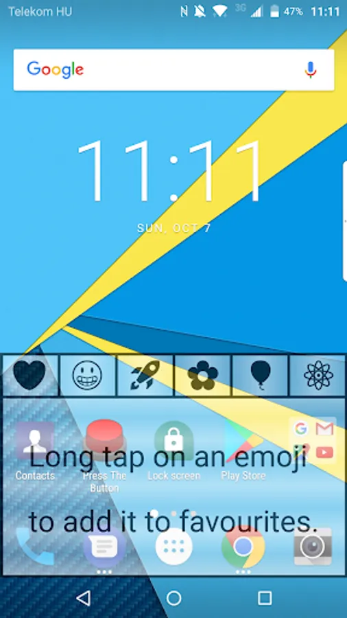 It's also got emojis. The emoji keyboard can be brought up by swiping your finger up from the spacebar. You can add emojis to your favourites, to access them quickly.