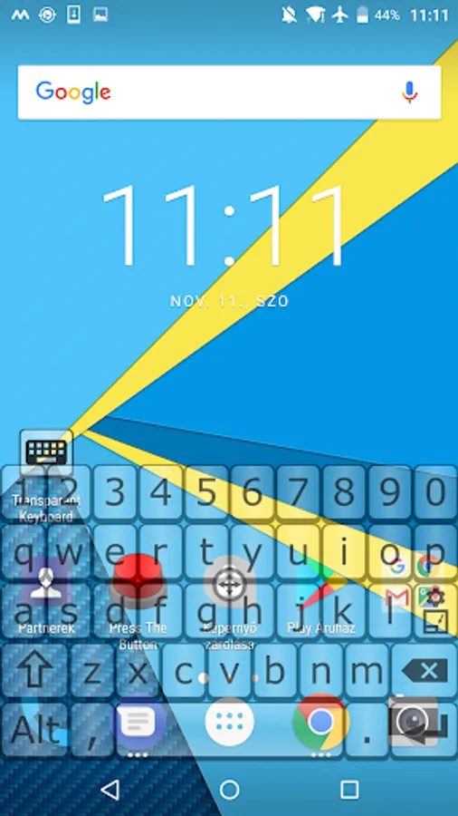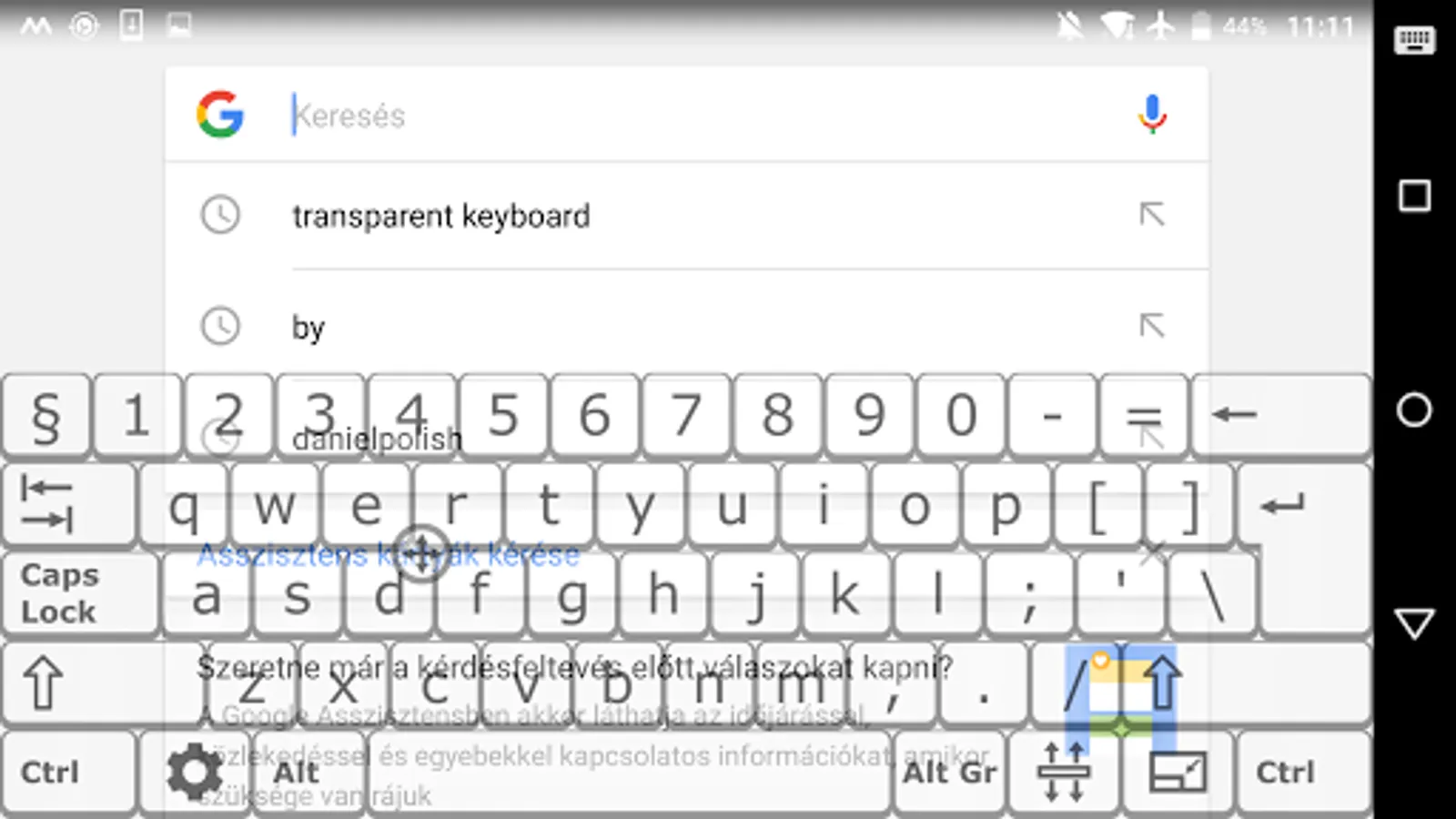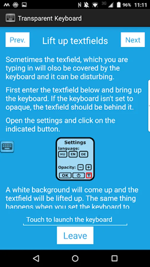 As the name mentions, it's a transparent keyboard. The opacity can be set from the keyboard layout, as well as the height.