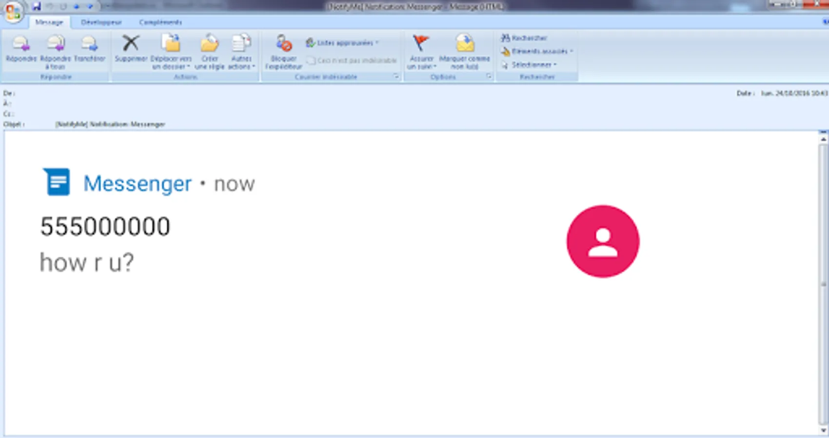 The keyword will be part of the title (e.g.: [NotifyMe] Notification: Messenger).