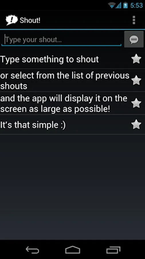 Maybe you're in class, maybe you're in a loud concert, maybe you want to secretly talk to your friend about the cutie sitting in front of you on the train - whatever the situation, Shout! is the app for you!