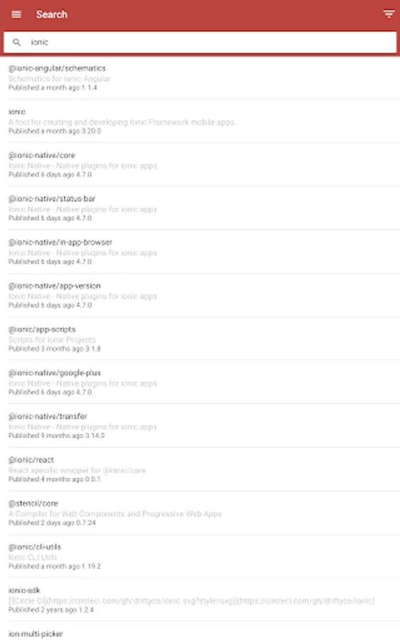 - Search through the npm registry