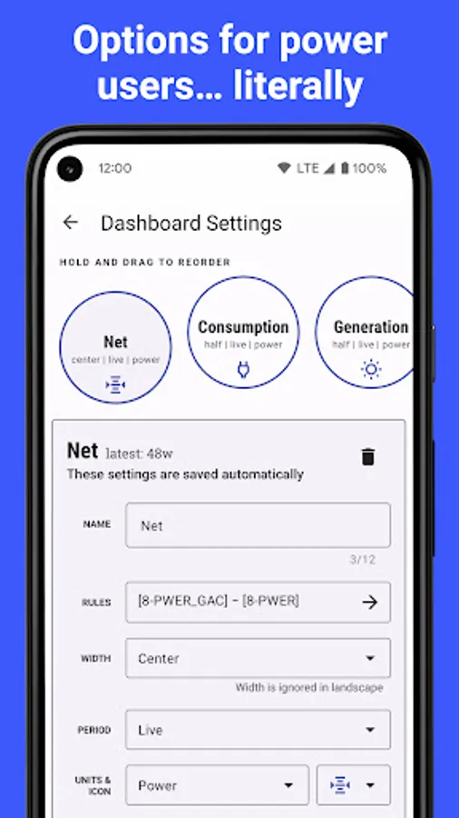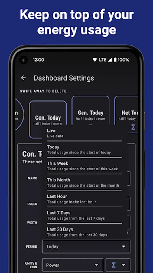 • Grid layout dashboard with support for historic items that show you your energy usage over a certain time period