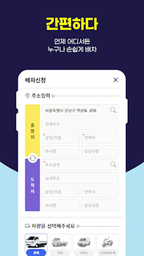 Vehicles can be dispatched to motorcycles, Damas, Labo, and various vehicles ranging from 1 ton to over 5 ton.