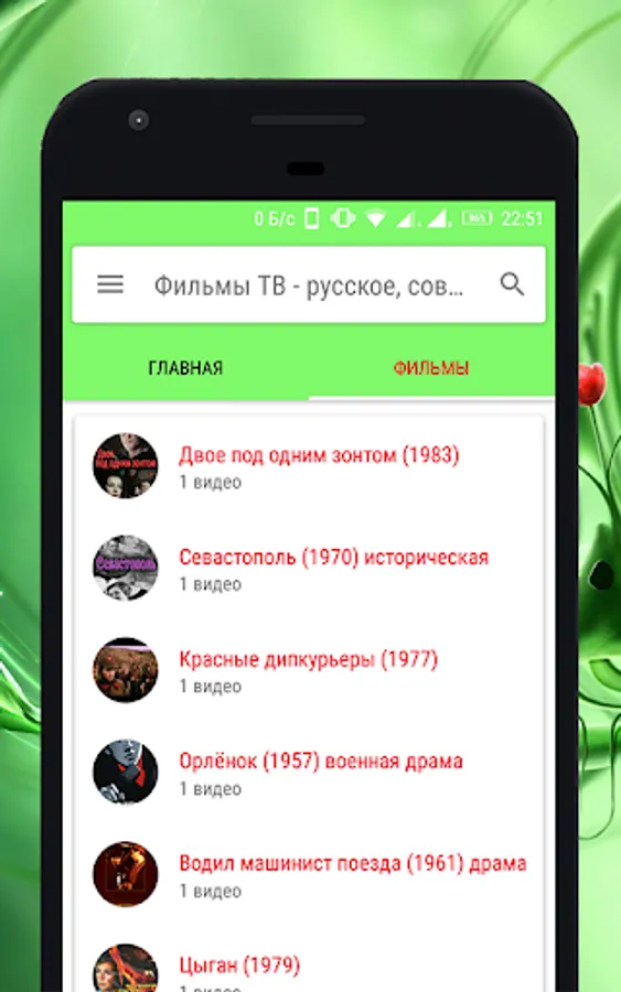 Good old Soviet films of different genres: comedies, war films, Soviet horror films, love stories, melodramas and dramatic stories. Films that have become classics and return the viewer to the Soviet era.