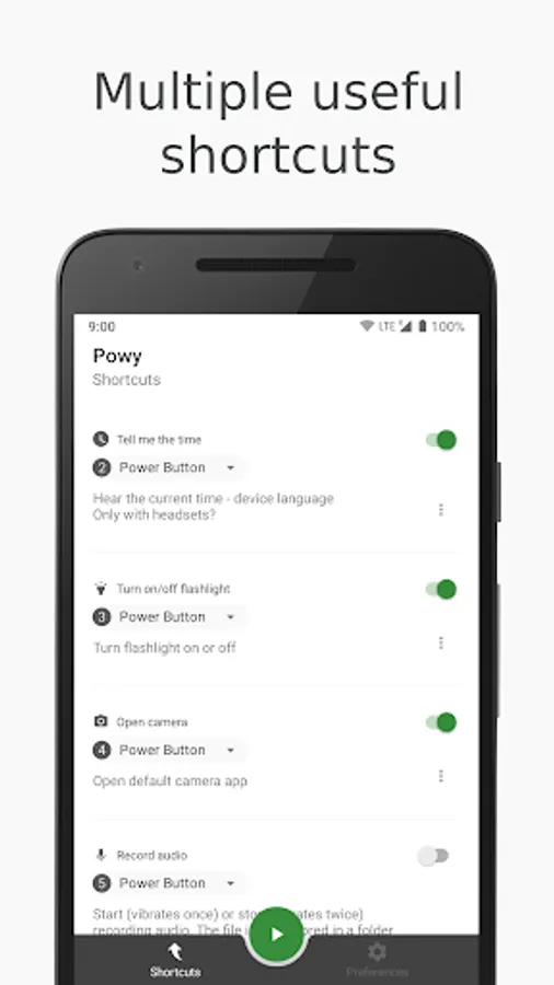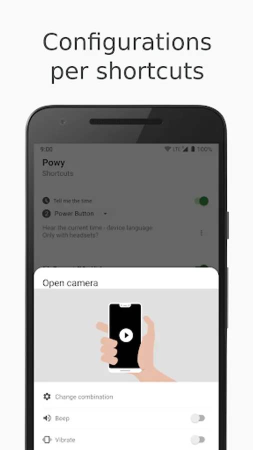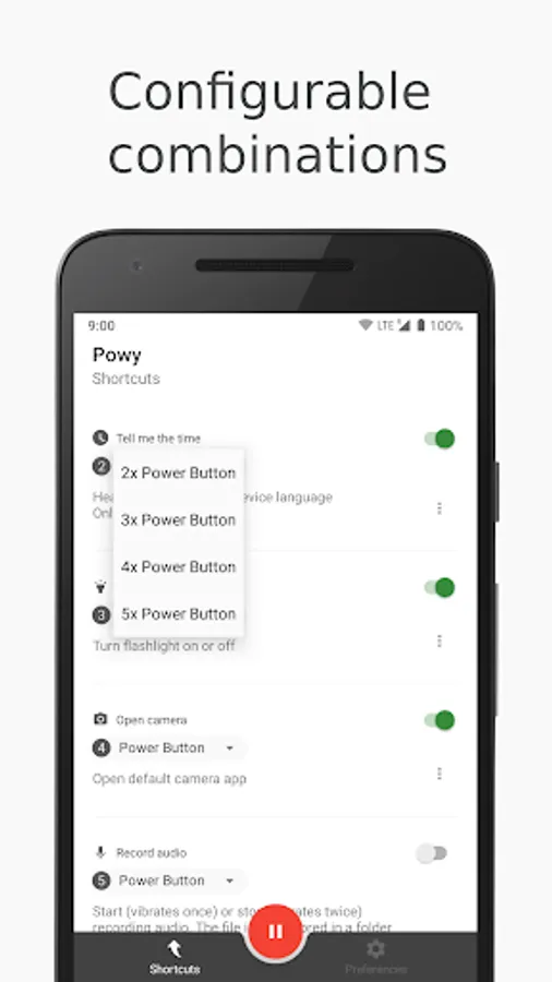 Powy allows you to have access to various configurable shortcuts just by pressing the power button.