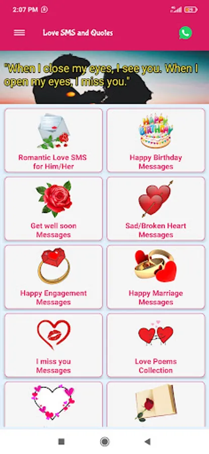 "Experience the magic of love with our Love Quotes and SMS app! Dive into a world of heartfelt expressions and romantic messages to share with your loved ones. Discover a collection of beautifully crafted love quotes and SMS to inspire, cherish, and ignite the flame of love.