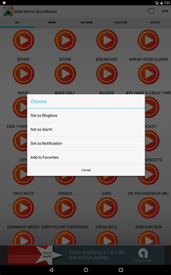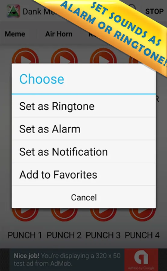 With this app, you can use your meme sounds with add to favorites, set as ringtone, set as notification or set as alarm.