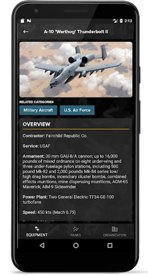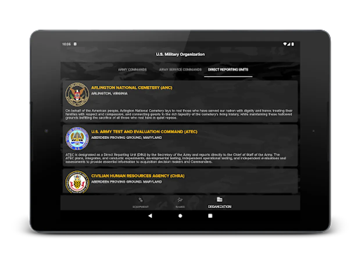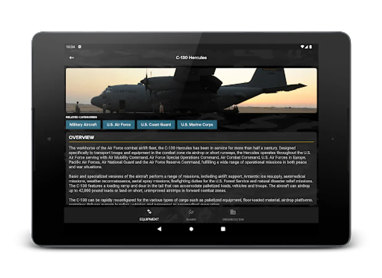 The U.S Military uses the most powerful and technologically advanced aircraft, land vehicles, equipment, and weapons available. If you enjoy working with high-tech gear, or if the speed and power of these vehicles appeal to you, the Army is the place to be. This app will serve anyone that would like to know about U.S Military Equipment.