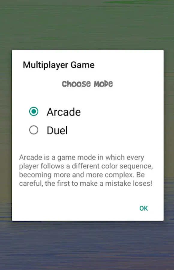- 2 Different multiplayer games (Modes: Arcade and Duel)