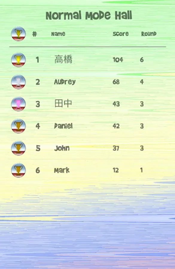 - Trophy hall (track your best scores)