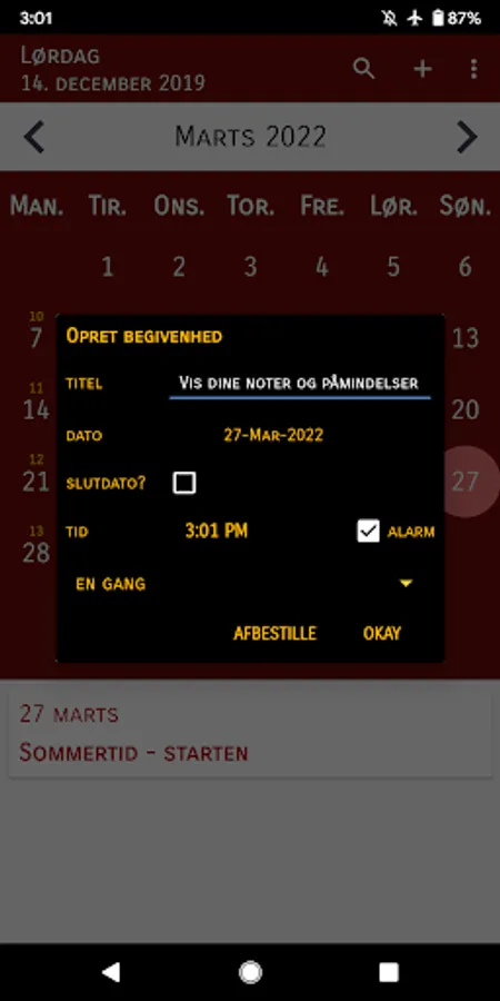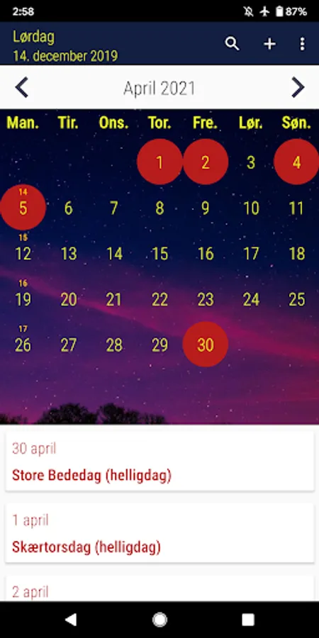 Denmark Calendar 2023 2024 with holiday planning and to do list widget to save your personal events, holidays and festivals in Denmark. All-in-one calendar with planner function and built-in organizer for the to-do list. Denmark holidays calendar year 2022 2023 2024 2025. When activated, calendar alarm will play the Kingdom of Denmark national anthem "Der er et yndigt land". Free calendar app with alarm, widget and week number.
