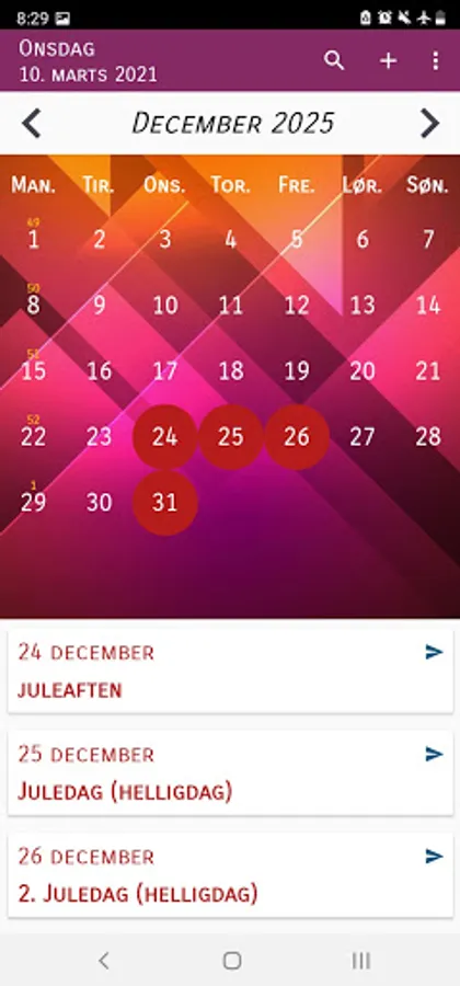 ✔ Mention of all public holidays and public holidays corresponding to Denmark; Both for the current year and for the next year.