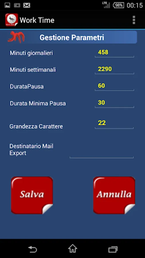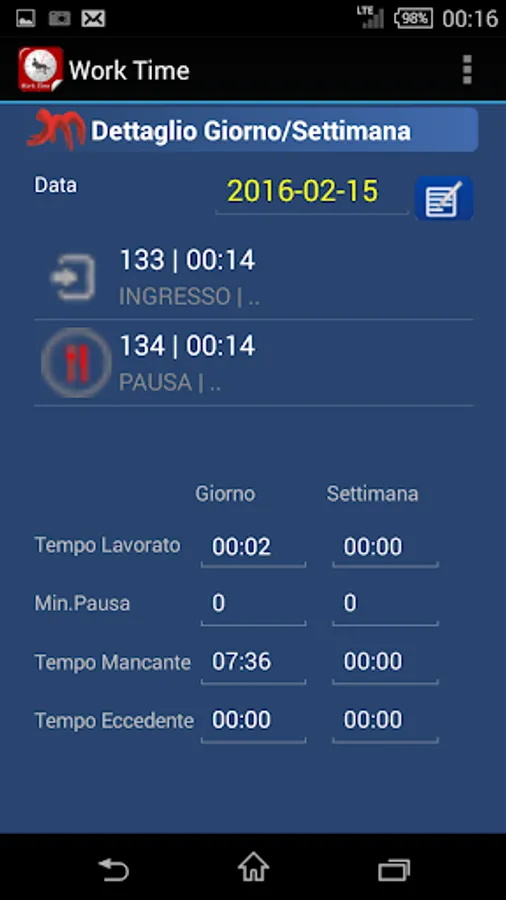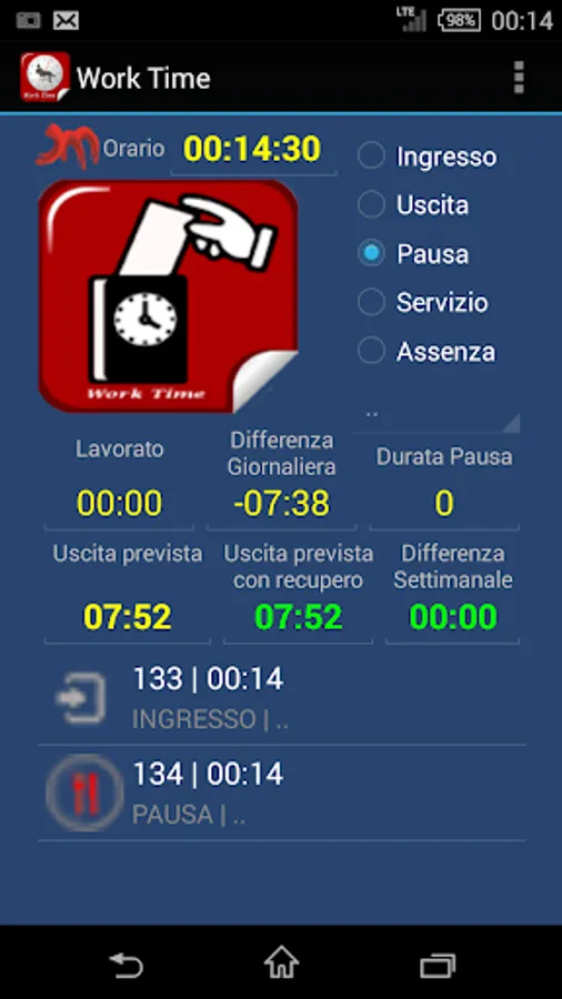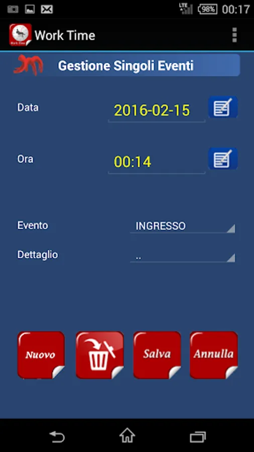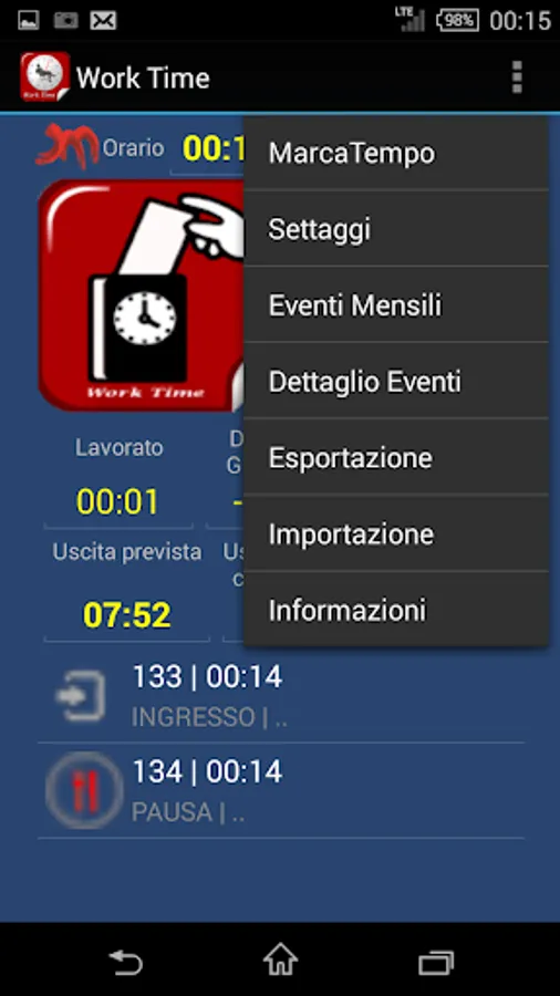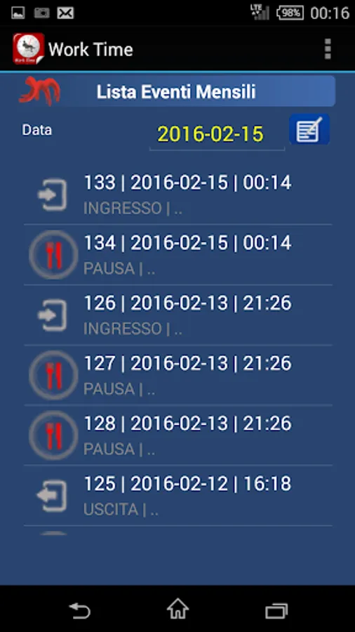 The import file must be copied in the download folder of the phone [timbrature.csv] and will be in the following CSV format: