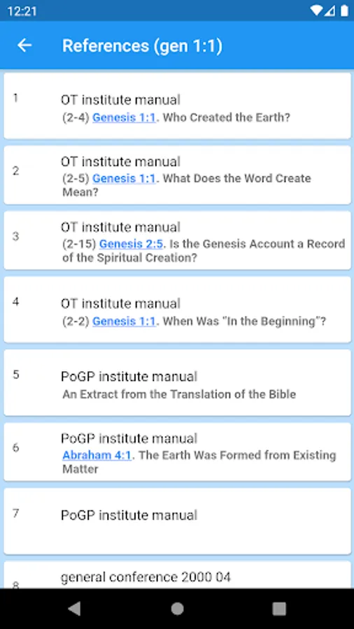When reading scriptures. Have you ever wondered how many sources reference a particular scripture? Now you can find out! This handy app shows the references from all the institute manuals and from past general conferences. More to come later.