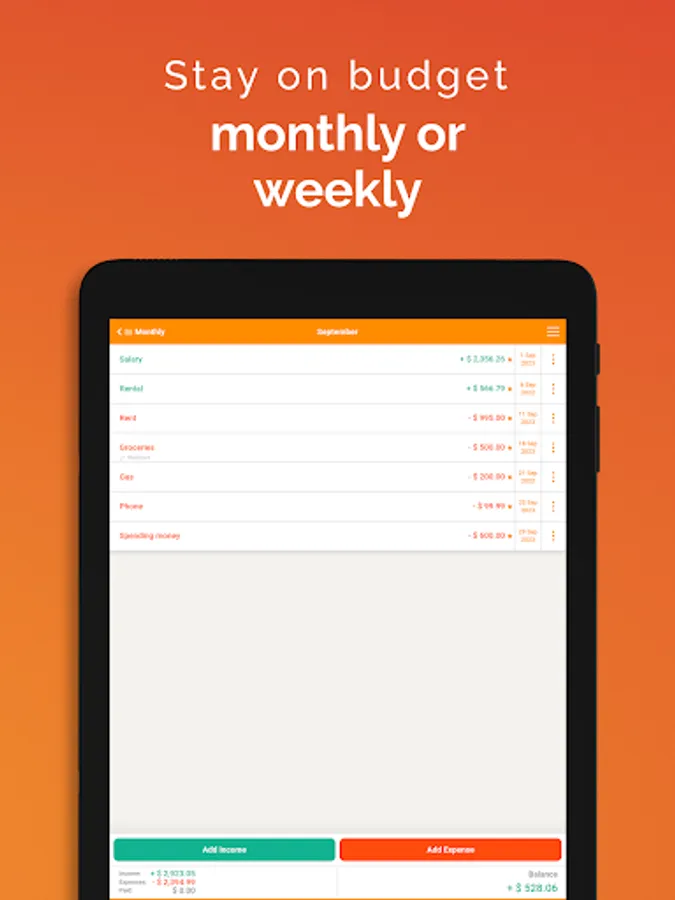 ● Stay on budget pay-check to pay-check (monthly, bi-weekly or weekly)