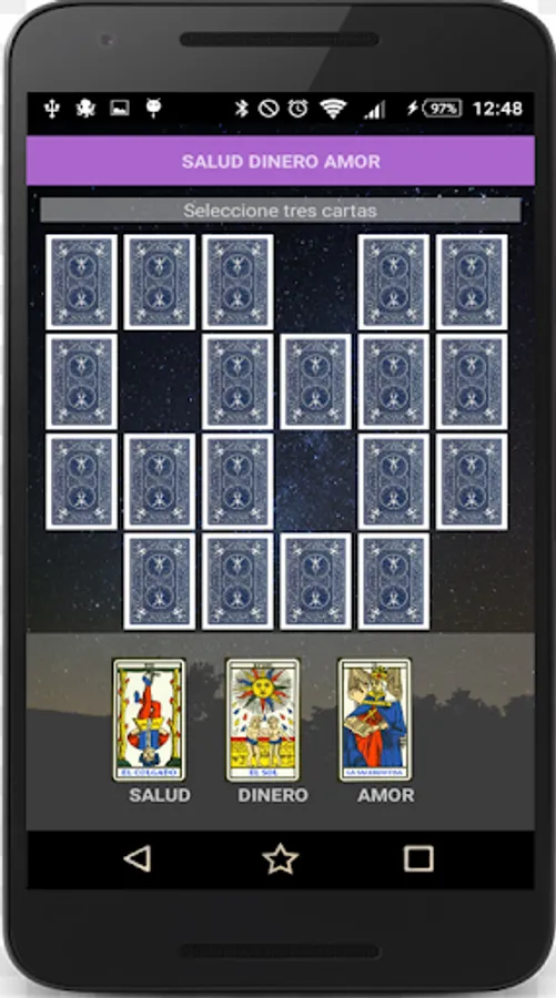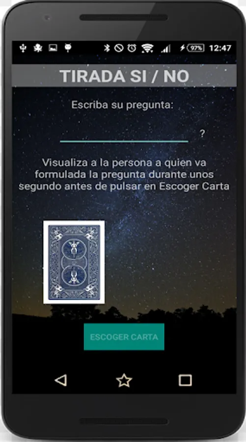 Application of divination of Tarot cards. It has two types of circulation, love YES / NO and 3 cards, health, money / work and love. It also has a dictionary to know the meaning of Tarot cards for queries. Includes the current moon phase.