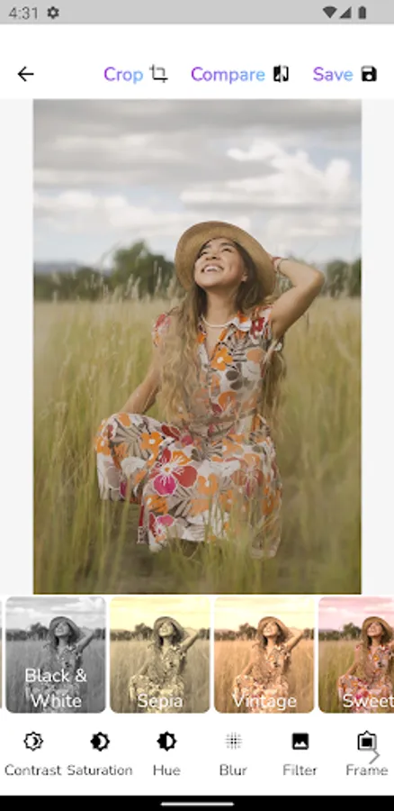 - Control brightness, saturation and contrast to improve the quality of your selfie.