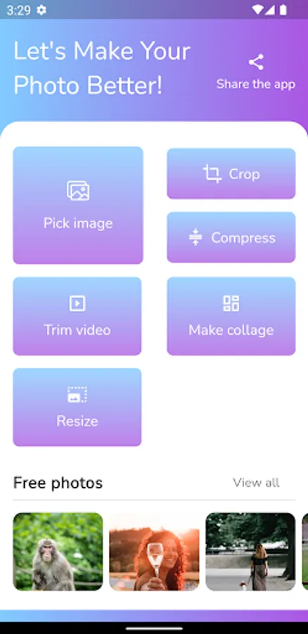 - There are many features in the same application, select images from your camera or gallery to start editing your photo for free.