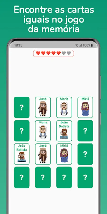 In the second game included in the app, have fun with an exciting memory game. Get to know and memorize the faces of biblical characters in three challenging levels. As you find matching cards, new levels are unlocked, further deepening your understanding of the stories and significant contributions of the Bible.