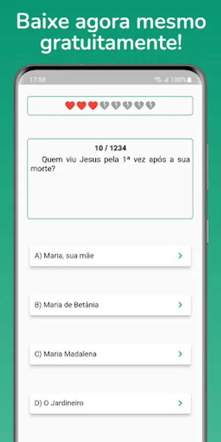 No matter your level of knowledge of the Bible, the "Bible Game: Explore and Learn" is perfect for everyone who wants to delve deeper into the riches of the Holy Scriptures. Download now and embark on this exciting journey of discovery and learning. Download the "Bible Game" app and start your biblical adventure today!