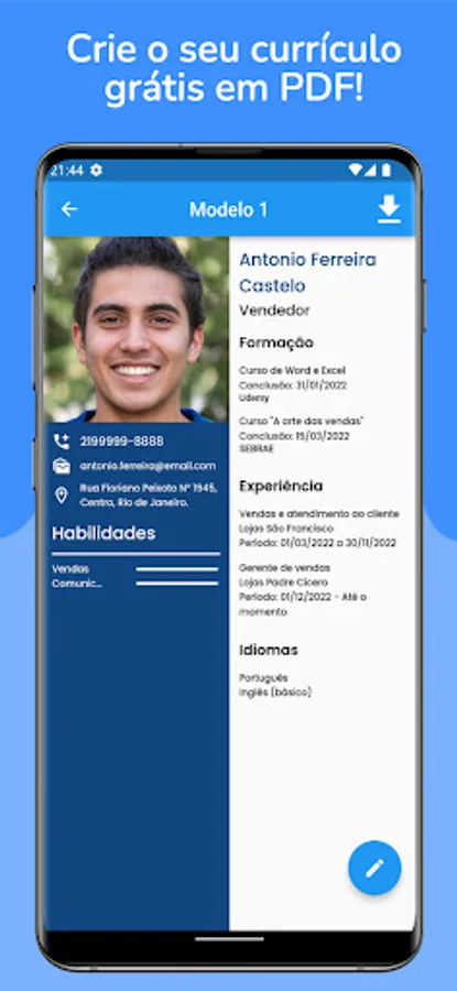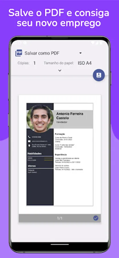 Resume Maker also has the option to make resume on mobile in different styles such as professional resume, resume vitae and ready-made resume. It does not stop there! You can also create resumes in PDF, ideal for those looking to make a free and quality resume.