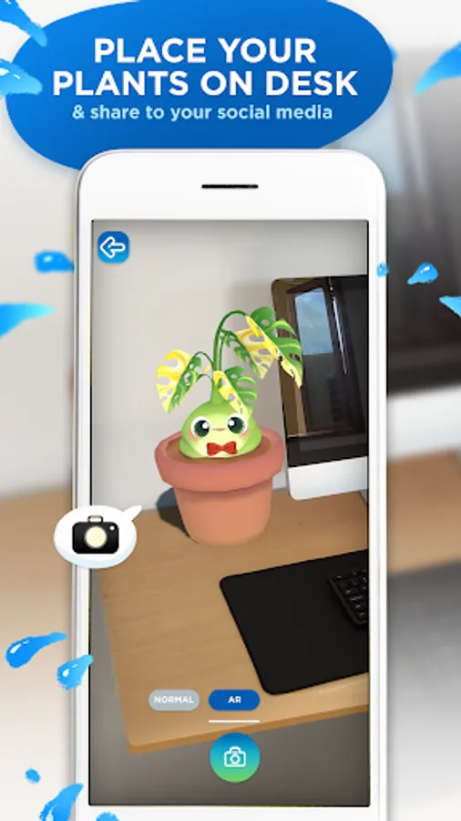Share your hydration achievement as your plant grows uniquely to your friends, or to your social media! You can choose to share your plant using your new unlocked background, or using state-of-the-art Augmented Reality (AR) option, that will put your plant next to your desk, your computer, your living room, or even in your garden!